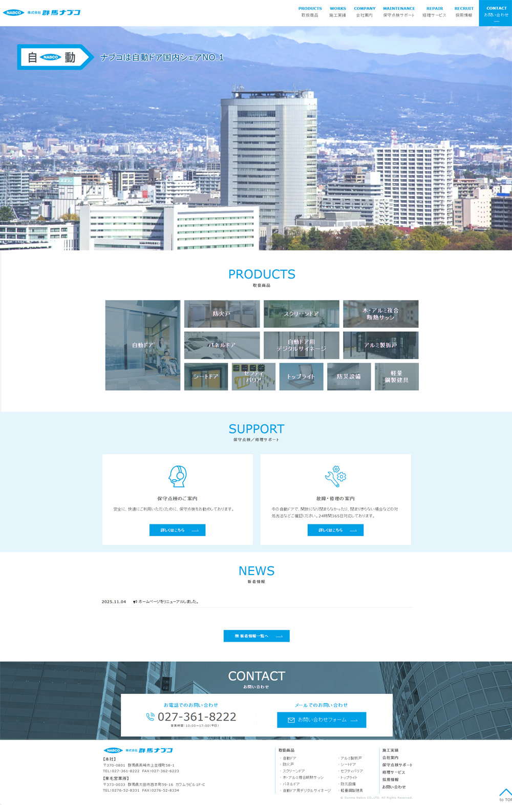 新着情報とお問い合わせフォームを導入させていただきました。