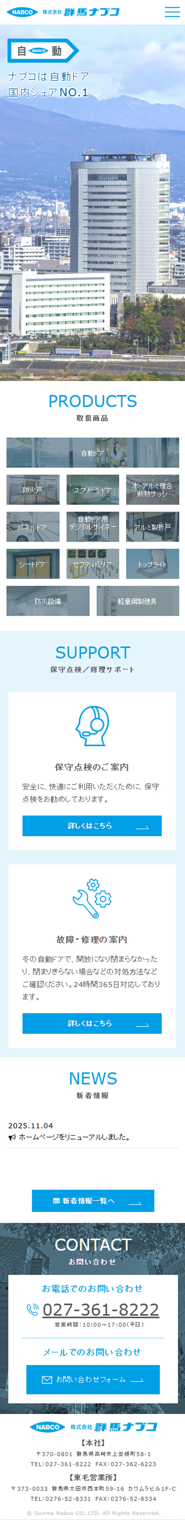 群馬県の自動ドア施工・販売会社様